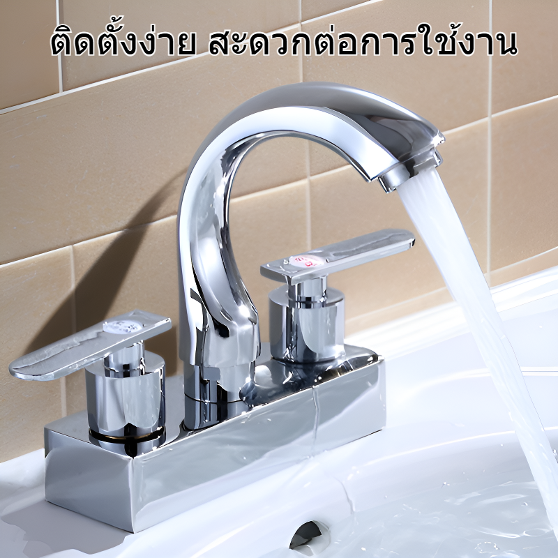 ก๊อกน้ำอ่างล้างหน้าแบบสองมือจับ กันน้ำ น้ำร้อนน้ำเย็น
